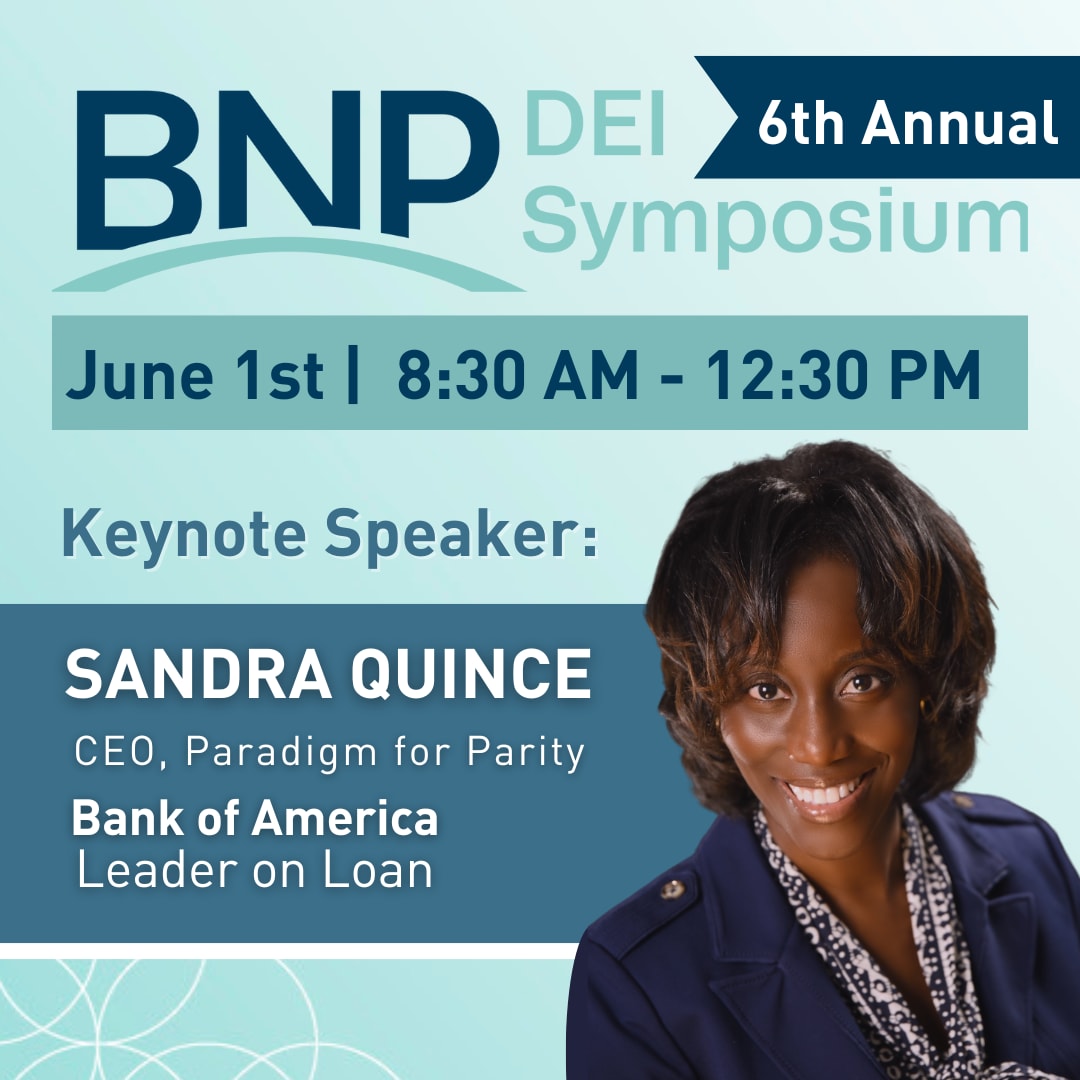 The BNP is excited to announce that the 2023 DEI Symposium will be held on Thursday, June 1st. This unique event delivers the ongoing learning necessary in the DEI realm in an easily digestible half day format that is filled with inspirational discussions and non-stop knowledge. This 6th Annual event is an exclusive opportunity to learn from the industry’s best. The BNP is delighted to welcome Sandra Quince as the Keynote for the DEI Symposium. As CEO to Paradigm for Parity, Bank of America Leader on Loan, Sandra’s unique background provides that rare combination of a leader who can speak about diverse recruitment and retention strategies in both the private sector and the non-profit world.
